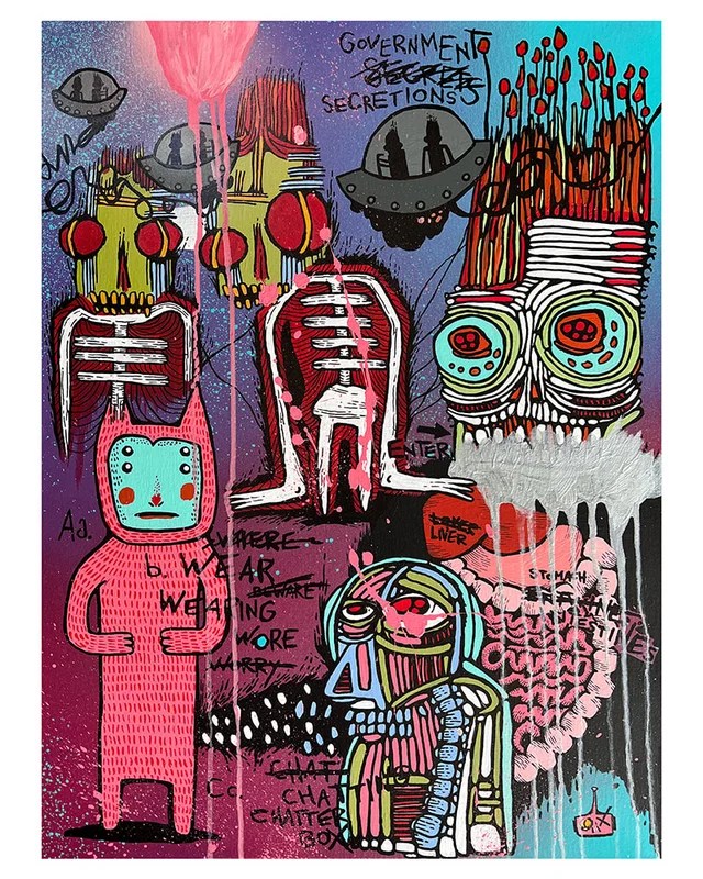 Billy combines his love of monsters, toys, and 1980’s pop culture into his current line of acrylic paintings. He currently lives in Ohio with his wife, son, cat and 21 year