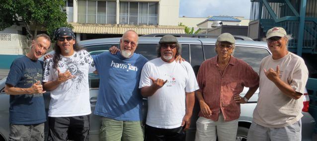 Kevin Daley – drums / Beau Leonidus – bass guitar / Chuck Souza – guitar, vocals Greg Kekipi – ‘ukulele / Kirk Thompson – keyboards / Sam Henderson – guitar Creed Fernandez – congas, percussion (not in photo)